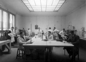 En novembre 1917 ouvrait l’Institut de Chimie de Rouen (ICR), fruit d’une collaboration entre industriels du textile normands. Le contexte est alors celui d’une France en pleine guerre, victime des dommages collatéraux qu’elle engendre. L’industrie textile en Région subit une telle pénurie de colorants que les professionnels du secteur en arrivent à s’interroger sur la question des compétences jusqu’alors détenues par l’ennemi allemand. De là naît l’institut de chimie de Rouen, ancêtre de l’INSA Rouen Normandie, proposant une formation d’ingénieurs chimistes et quelques travaux de recherche appliquée. Jugé alors trop théorique par les industriels, le schéma habituel de formation laisse place à un cursus alliant enseignements et pratique, répondant bien plus à leurs besoins. Cette petite révolution pédagogique marque les débuts de l’alternance école-entreprise.