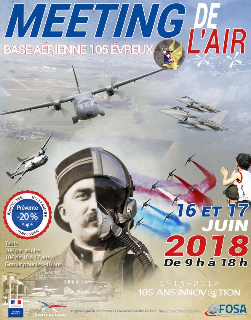 Fête aérienne ouverte à tous, le meeting d’Évreux est l’occasion d’assister à des présentations en vol d’avions et d’hélicoptères militaires ou civils, dont la patrouille de France. Mais c’est aussi un forum des métiers de l’aéronautique civile et militaire qui vous permettra de découvrir les nombreux métiers accessibles à tous à travers des ateliers, une présentation statique de matériels et d’aéronefs et un très bel espace simulation.