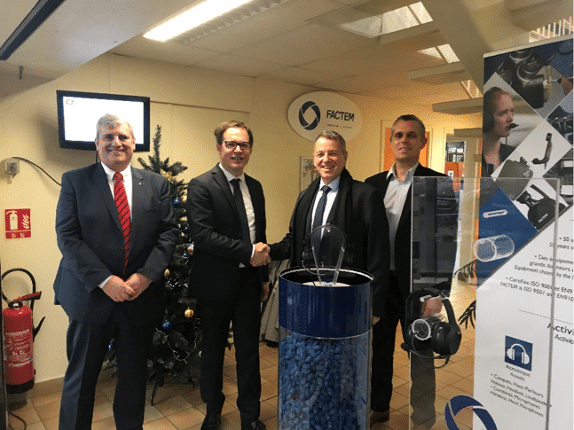 Vendredi 11 janvier, FACTEM a eu le plaisir d’accueillir dans ses lieux M. Bertrand Bouyx, député de la circonscription, ainsi que son attaché parlementaire, M. Hugo Guillochin pour une visite de notre site industriel. Nous les remercions chaleureusement pour ce déplacement et espérons pouvoir les accueillir de nouveau très prochainement à l’occasion de la mise en production de notre casque FL20 !
