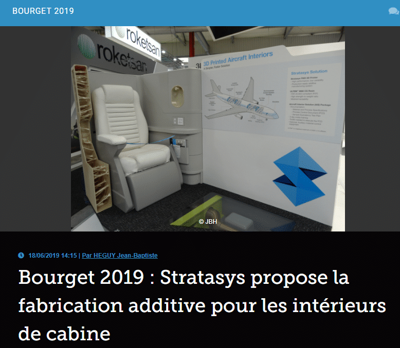 Bourget 2019 : Stratasys propose la fabrication additive pour les intérieurs de cabine