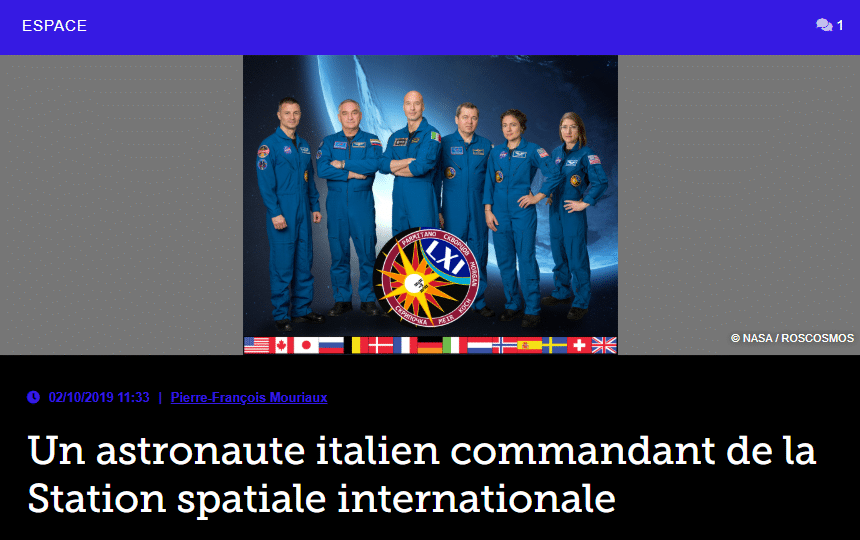 Après le Belge Frank De Winne (en octobre-novembre 2009) et l’Allemand Alexander Gerst (en octobre-décembre 2018), l’Italien Luca Parmitano devient le troisième Européen à diriger le complexe orbital.A la veille […]