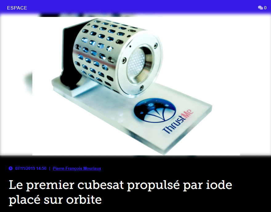 La startup francilienne ThrustMe, créée autour d’un système de propulsion innovant pour cubesats, a embarqué son premier démonstrateur sur un lanceur chinois.Le 3 novembre, à l’occasion de la mise sur […]