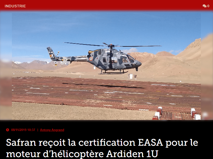 Safran Helicopter Engines a reçu de l’EASA le certificat de type de l’Ardiden 1U, qui motorise l’hélicoptère indien LUH (Light Utility Helicopter). Le LUH est un nouvel hélicoptère monomoteur et […]