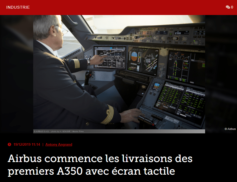 Airbus commence les livraisons des premiers A350 avec écran tactile