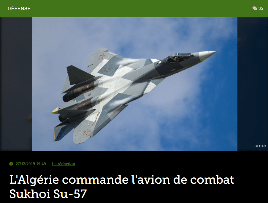 Selon le site algérien Menadefense, le gouvernement algérien a conclu des contrats portant sur l’achat de 14 avions de combat Sukhoi Su-57 aux côtés de 28 Su-34 et Su-35.L’Algérie sera […]