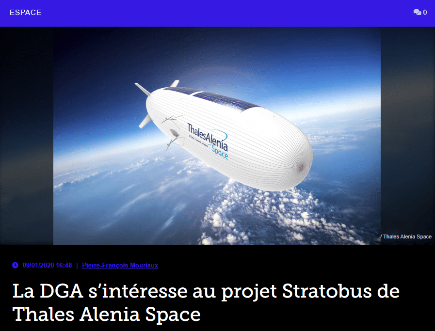 La DGA s’intéresse au projet Stratobus de Thales Alenia Space