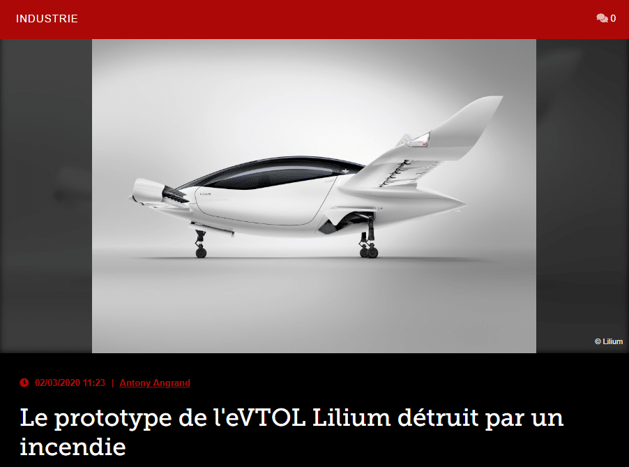 Le prototype de l’eVTOL Lilium détruit par un incendie