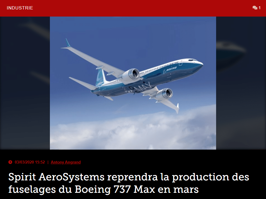 Spirit AeroSystems reprendra la production des fuselages du Boeing 737 Max en mars