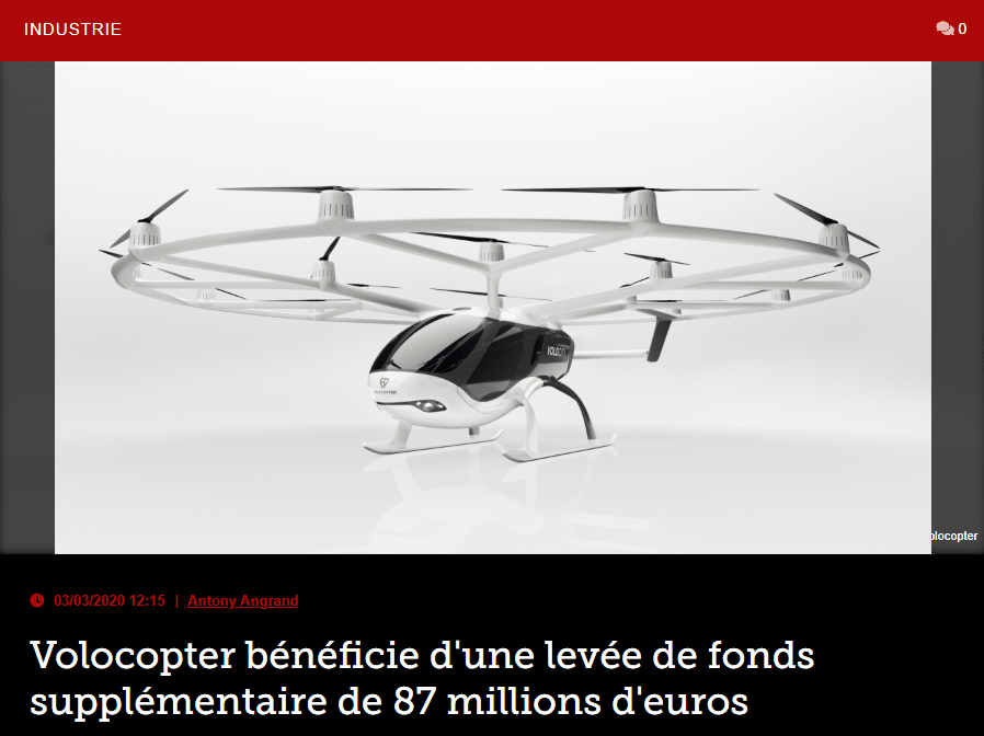 Volocopter bénéficie d’une levée de fonds supplémentaire de 87 millions d’euros