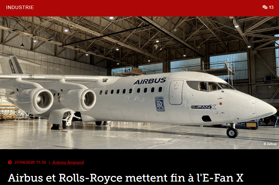 Airbus et Rolls-Royce mettent fin à l’E-Fan X
