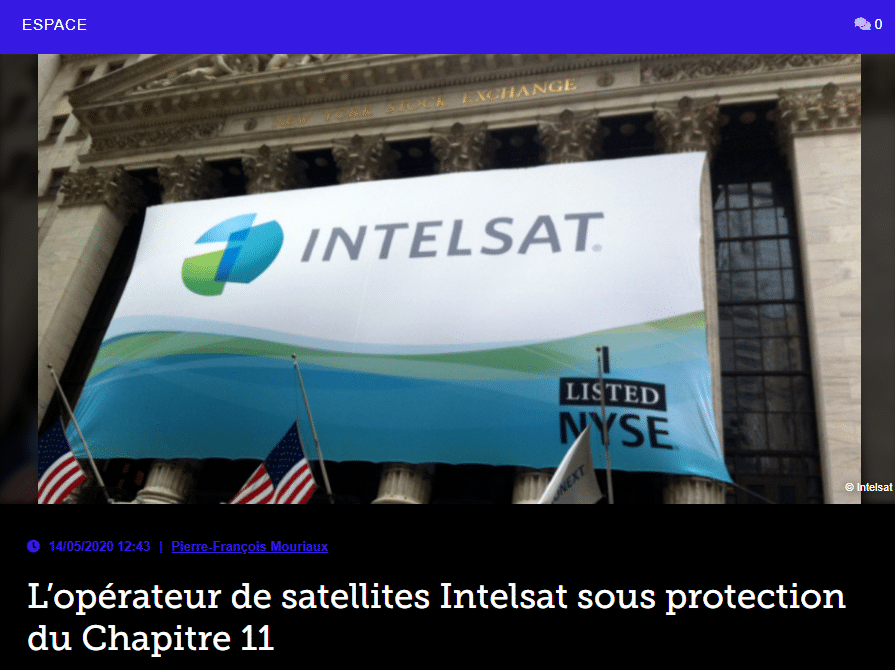 Fragilisé un bon moment, le géant américain espère rebondir après cette manœuvre comptable.Restructuration financièreLe 13 mai, l’opérateur américain de satellites de télécommunications géostationnaires Intelsat et certaines de ses filiales (mais […]
