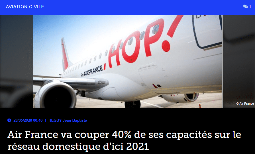 Air France va couper 40% de ses capacités sur le réseau domestique d’ici 2021