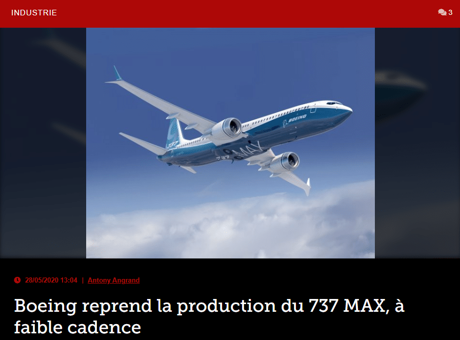 A faible cadenceC’est après cinq mois d’inactivité que Boeing a repris la production du 737 Max à l’usine de Renton, dans l’état de Washington. La cadence de production reste très […]