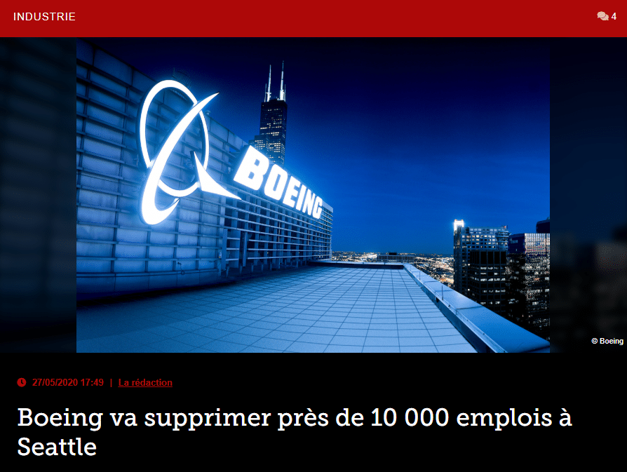 Boeing 737 MAX + coronavirusBoeing annonce ce mercredi 27 mai la suppression de près de 10 000 emplois dans ses usines de Seattle dans l’Etat de Washington. Ces suppressions s’appuieront […]