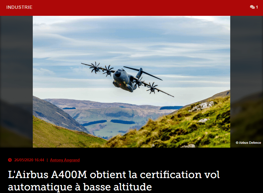 L’Airbus A400M obtient la certification vol automatique à basse altitude
