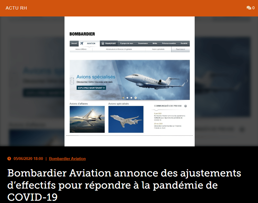Bombardier Aviation annonce des ajustements d’effectifs pour répondre à la pandémie de COVID-19