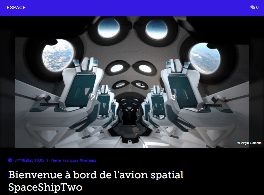 Chaque fin de semaine, une image qui a fait l’actualité ou retenu notre attention. Le 28 juillet, la compagnie de tourisme spatial Virgin Galactic a présenté une modélisation inédite de […]