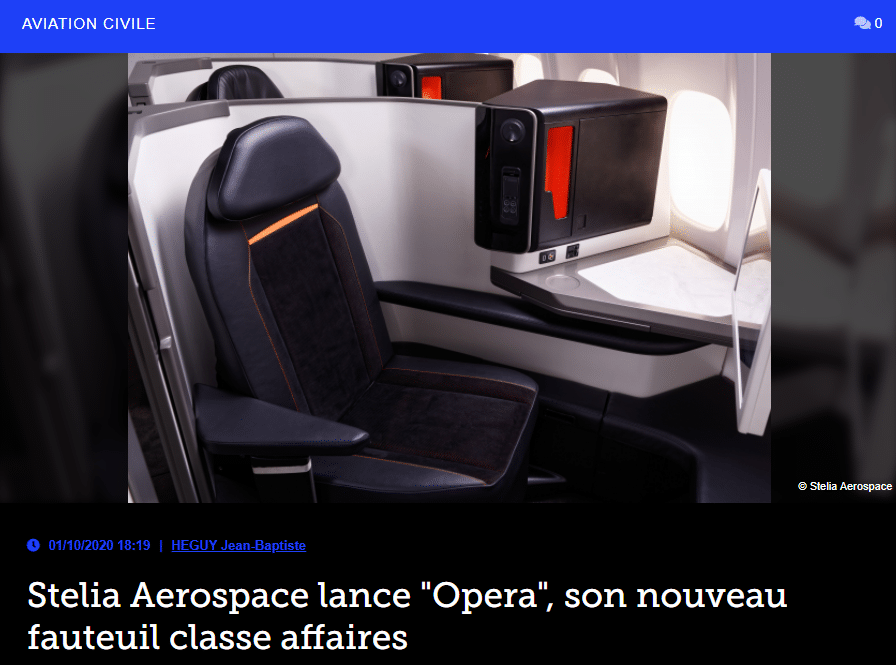 Stelia Aerospace lance « Opera », son nouveau fauteuil classe affaires