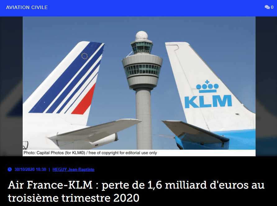 Sous l’effet de la crise liée à la pandémie du Covid-19, Air France-KLM a encore publié une perte nette de plus de 1,6 milliard d’euros au troisième trimestre 2020. La […]