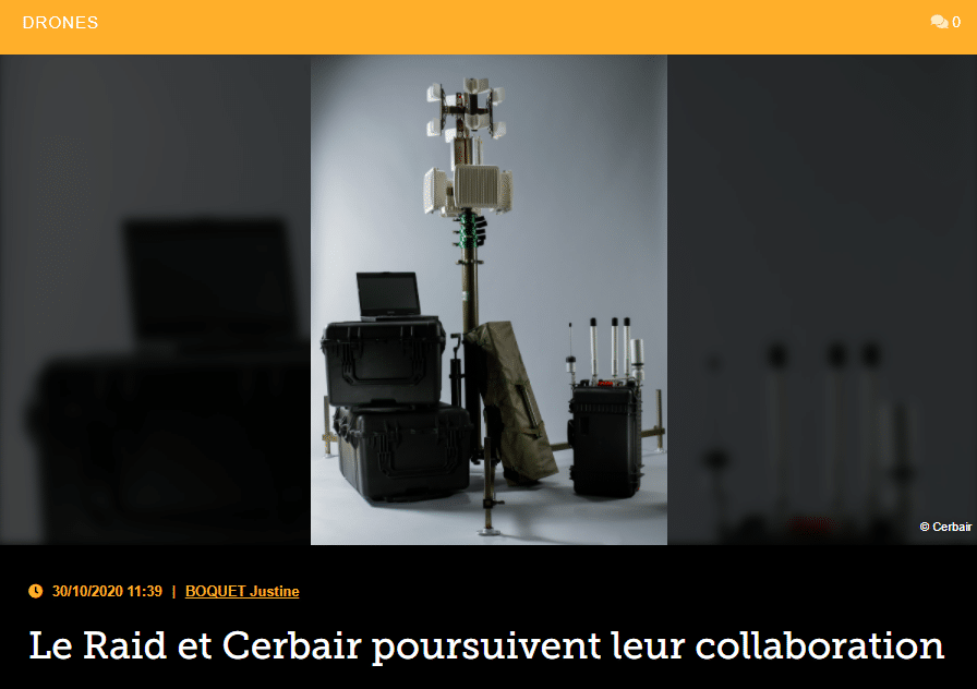 Le Raid a employé les solutions de lutte anti-drones de Cerbair a l’occasion du sommet Med 7.Lutte anti-drones.Cerbair a révélé fin octobre que ses solutions de lutte anti-drones avaient été […]