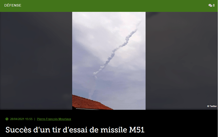 Le ministère des Armées a annoncé le 28 avril un essai réussi (à vide) du missile stratégique MSBS au service de la dissuasion nucléaire française. Peu de détails Mercredi 28 avril […]