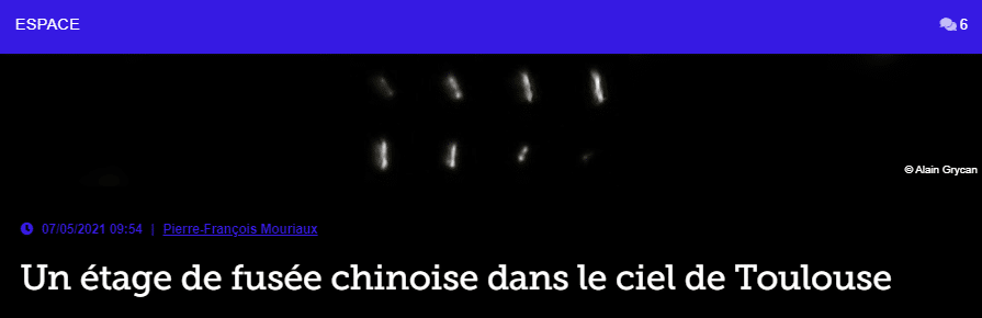 Chaque fin de semaine, une image qui a fait l’actualité ou retenu notre attention. Le 4 mai, l’astrophotographe Alain Grycan a capturé dans le ciel toulousain l’étage supérieur du lanceur […]