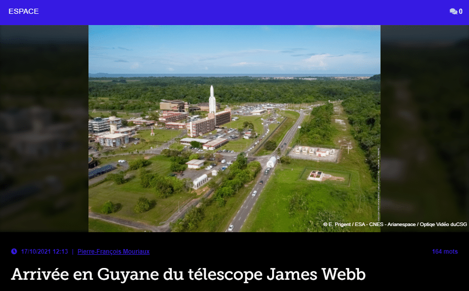 Chaque fin de semaine, une image qui a fait l’actualité ou retenu notre attention. Le 12 octobre, le précieux télescope spatial de la Nasa est arrivé à Kourou, d’où il […]
