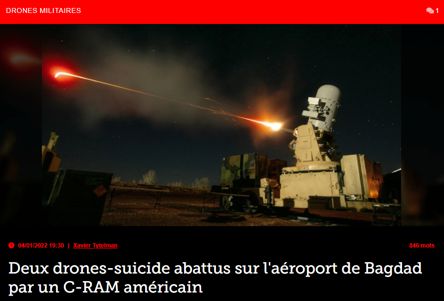 Deux drones-suicide abattus sur l’aéroport de Bagdad par un C-RAM américain