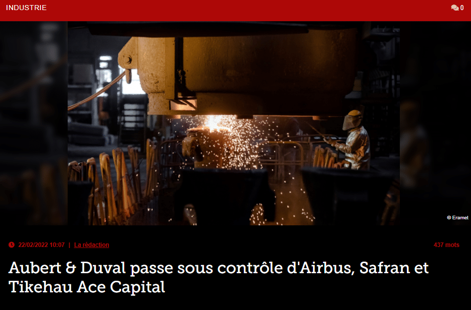 Aubert & Duval passe sous contrôle d’Airbus, Safran et Tikehau Ace Capital