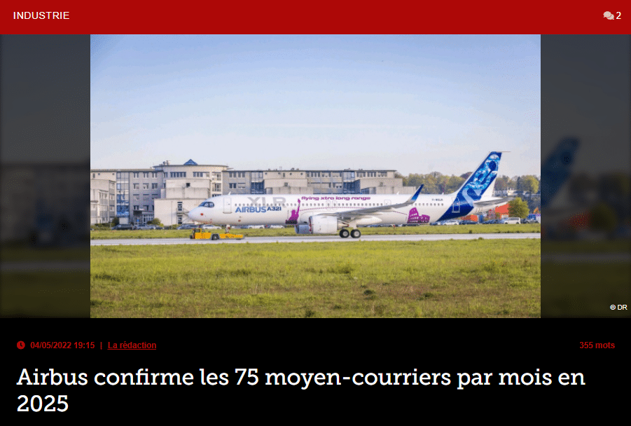 Airbus confirme les 75 moyen-courriers par mois en 2025