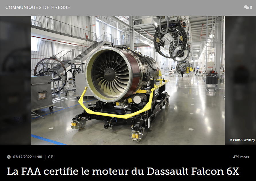 La Federal Aviation Administration certifie le moteur PW812D franchissant ainsi une nouvelle étape dans l’entrée en service du jet d’affaires Falcon 6X de Dassault. La Federal Aviation Administration des États-Unis […]