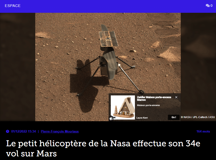 Ingenuity, le petit hélicoptère solaire de la mission Mars 2020, continue de donner satisfaction, 22 mois après son arrivée sur la planète rouge. Ingenuity joue les prolongations Le 23 novembre, la […]