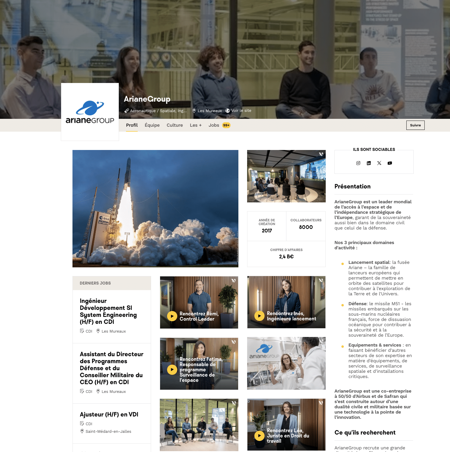 La vitrine ArianeGroup sur le site Welcome To The Jungle