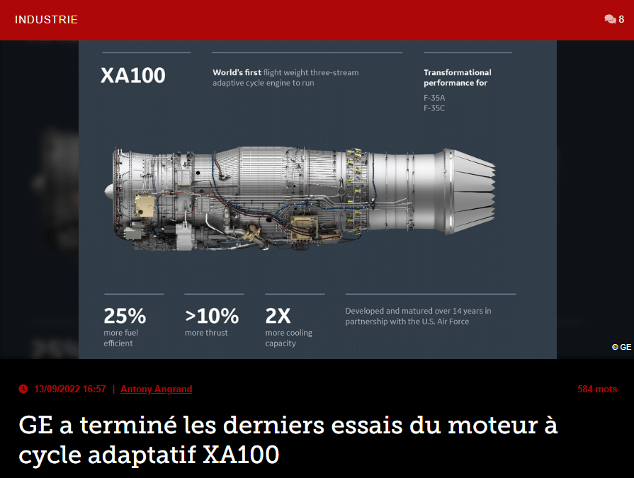 GE et l’US Air Force ont terminé les essais du second turboréacteur à cycle adaptatif XA100, qui sera concurrent du Pratt & Whitey F135 EEP sur le F-35 Block 4. […]