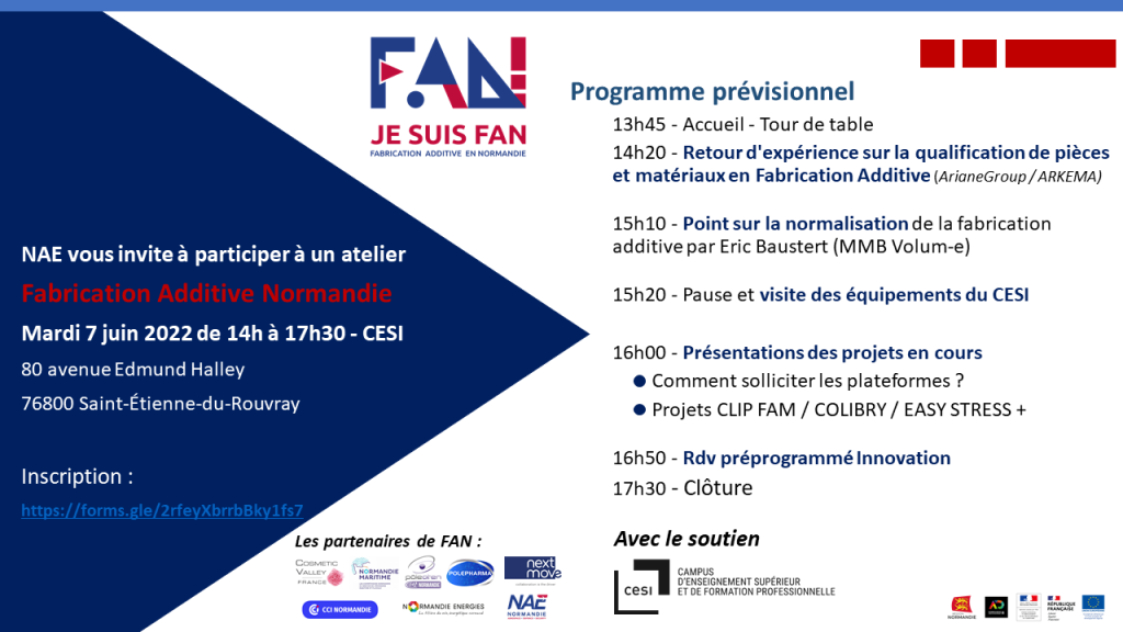 Un après-midi pour partager autour des enjeux de la Fabrication Additive. Un focus sera réalisé sur la qualification des pièces et matériaux en Fabrication Additive grâce à la présence d’industriel, […]