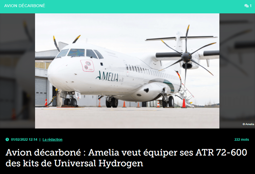 Avion décarboné : Amelia veut équiper ses ATR 72-600 des kits de Universal Hydrogen