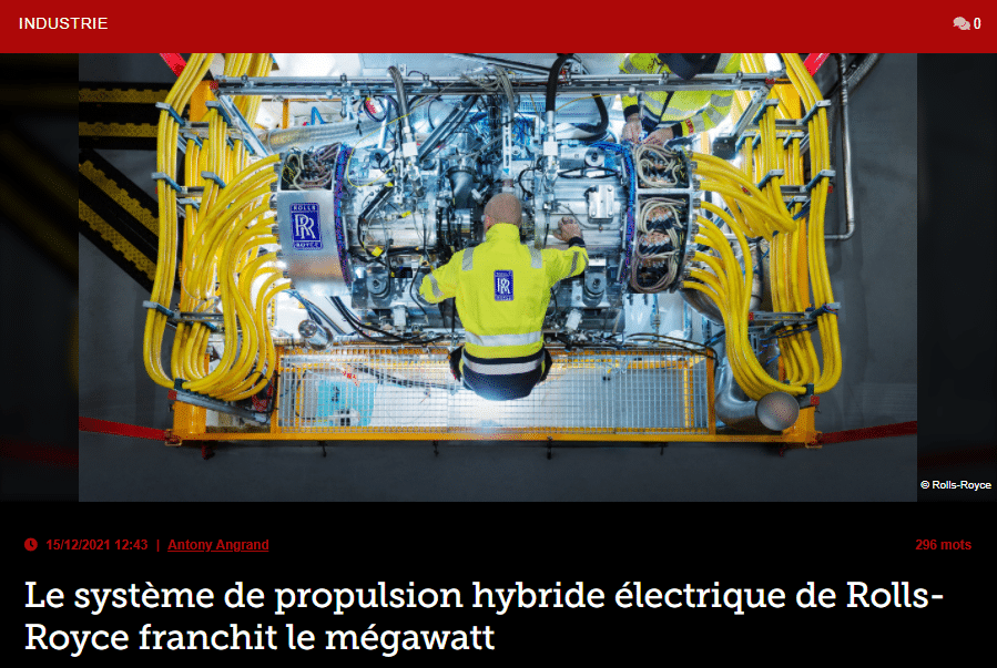 Le système de propulsion hybride électrique de Rolls-Royce franchit le mégawatt