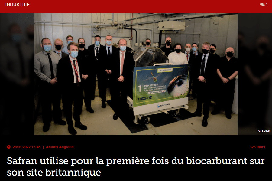 Safran utilise pour la première fois du biocarburant sur son site britannique